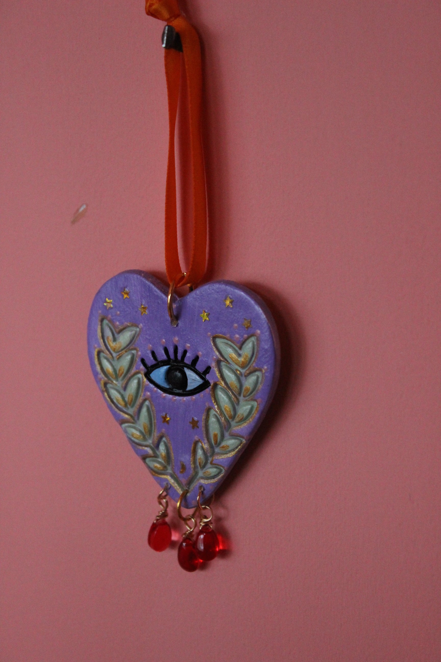 This Clay Heart Ornament is made from Air dry clay, painted with waterbased Acrylic paint and then glazed with a non-toxic and water repellent sealant.