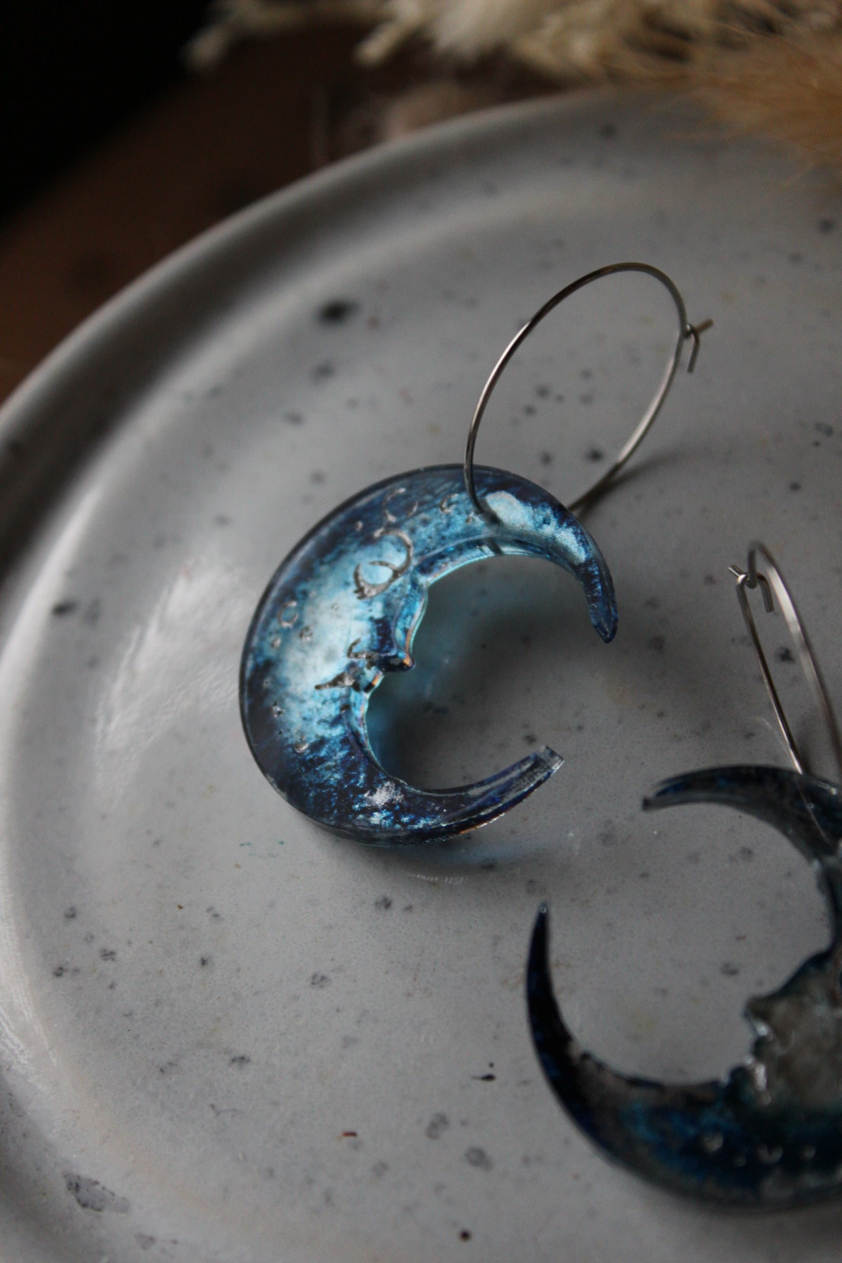 These Moody Moon Earrings are made from sealed handpainted Resin.