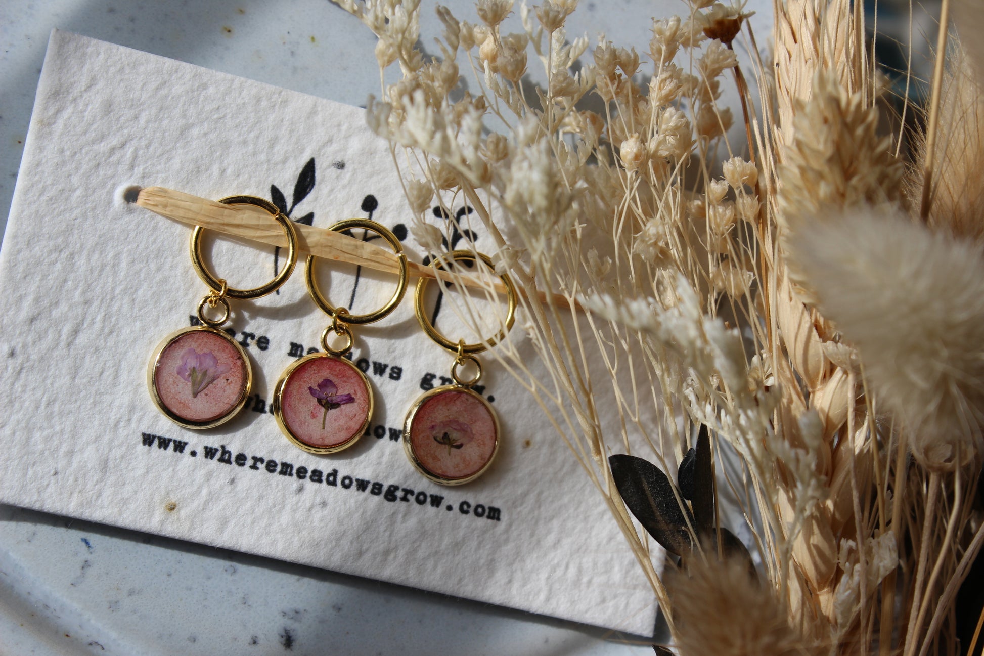 These Stitchmarkers contain pressed petals