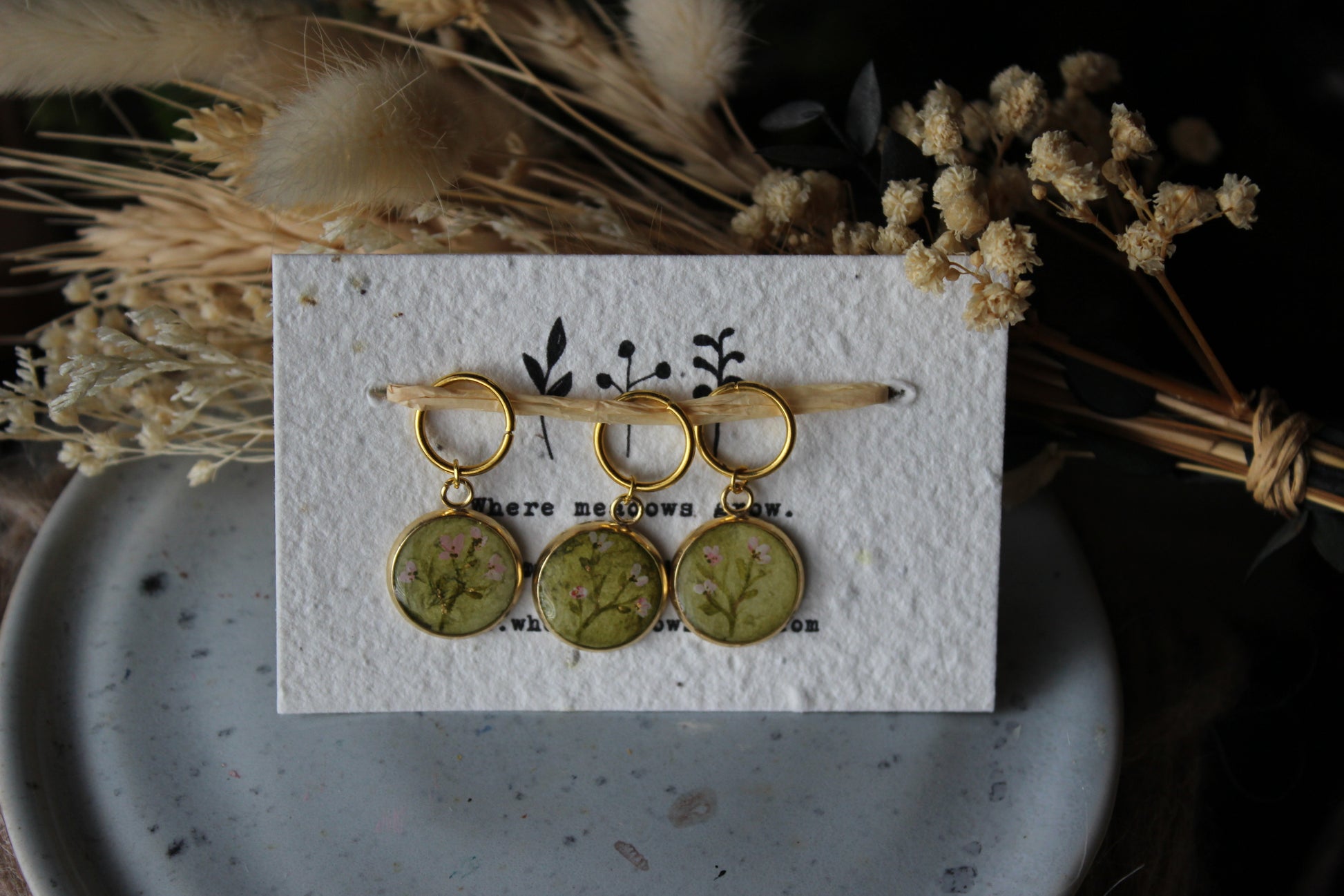 Set of 3 hand painted and resin coated stitch markers
