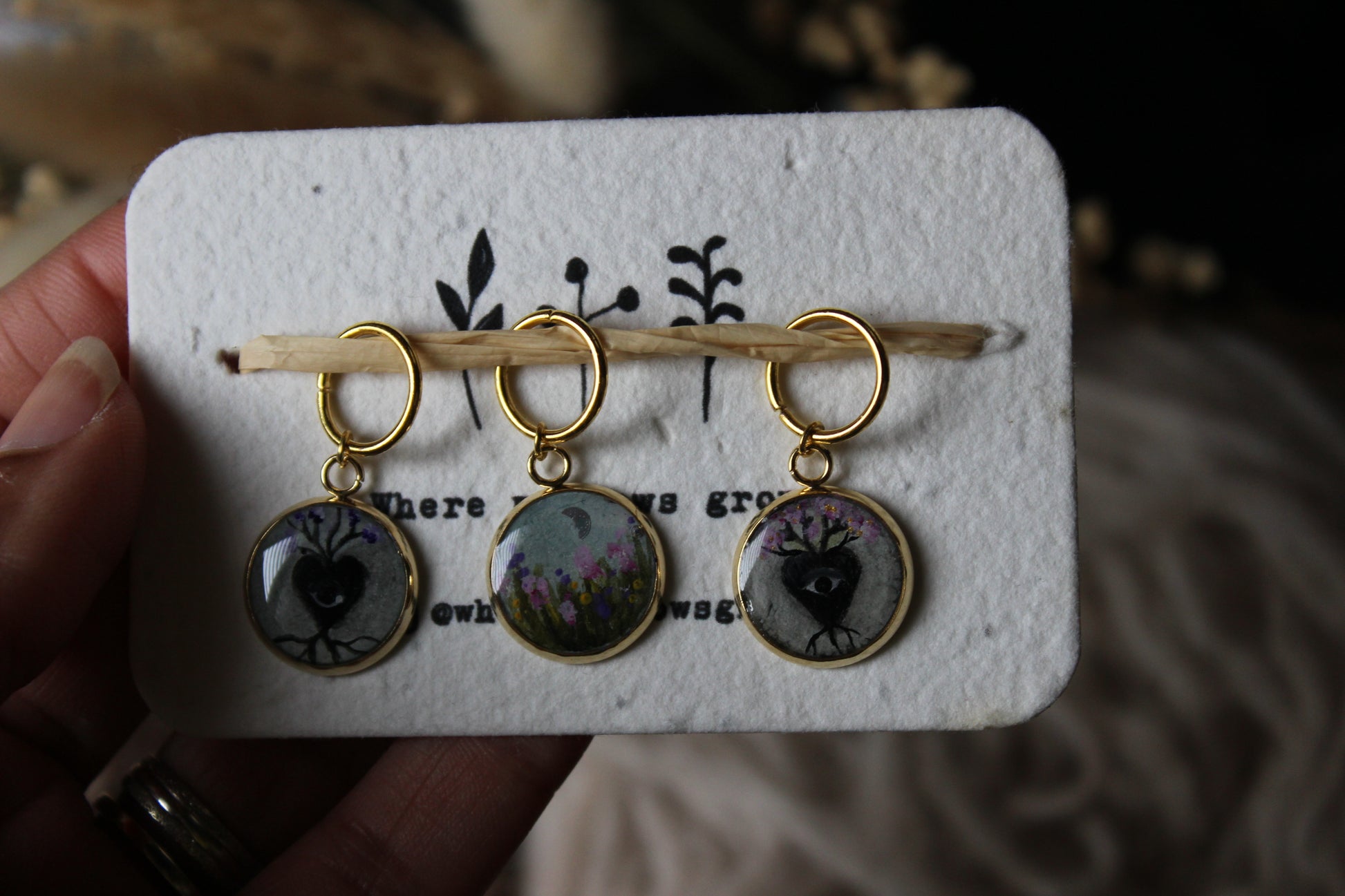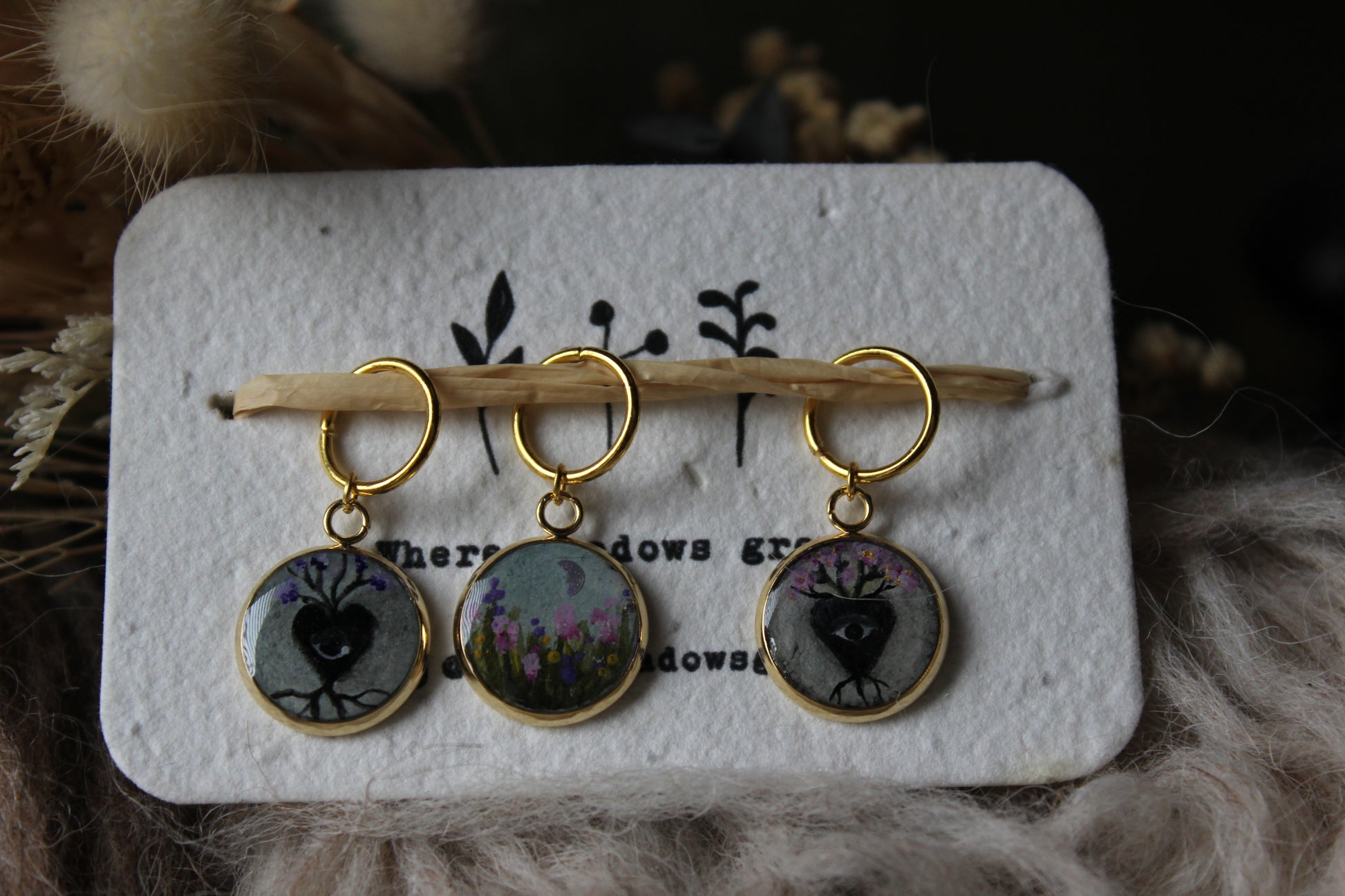 Set of 3 hand painted and resin coated stitch markers