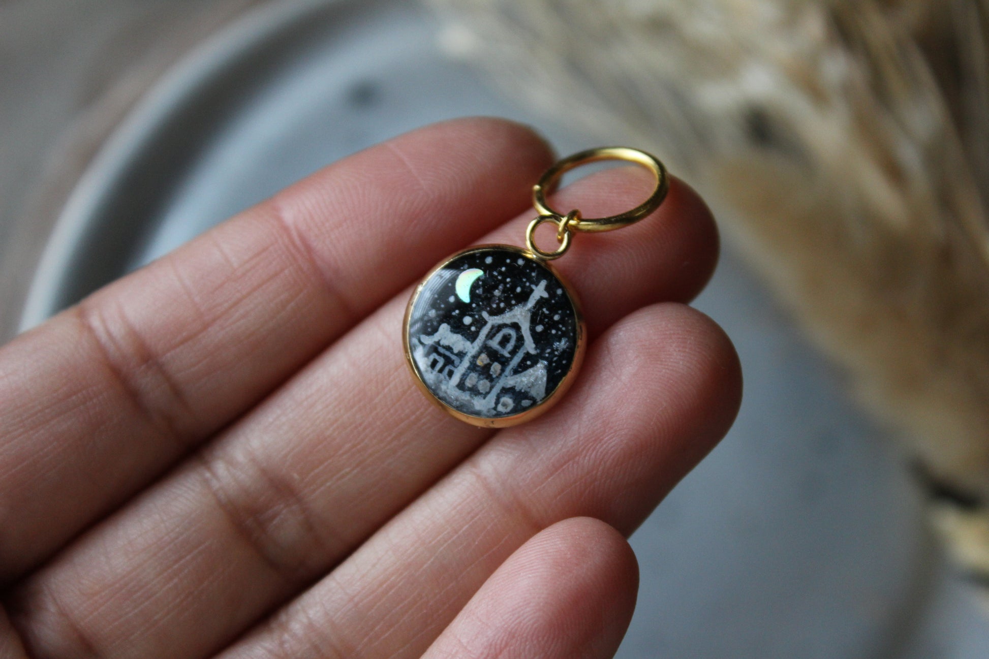 1 hand painted and resin coated stitch marker